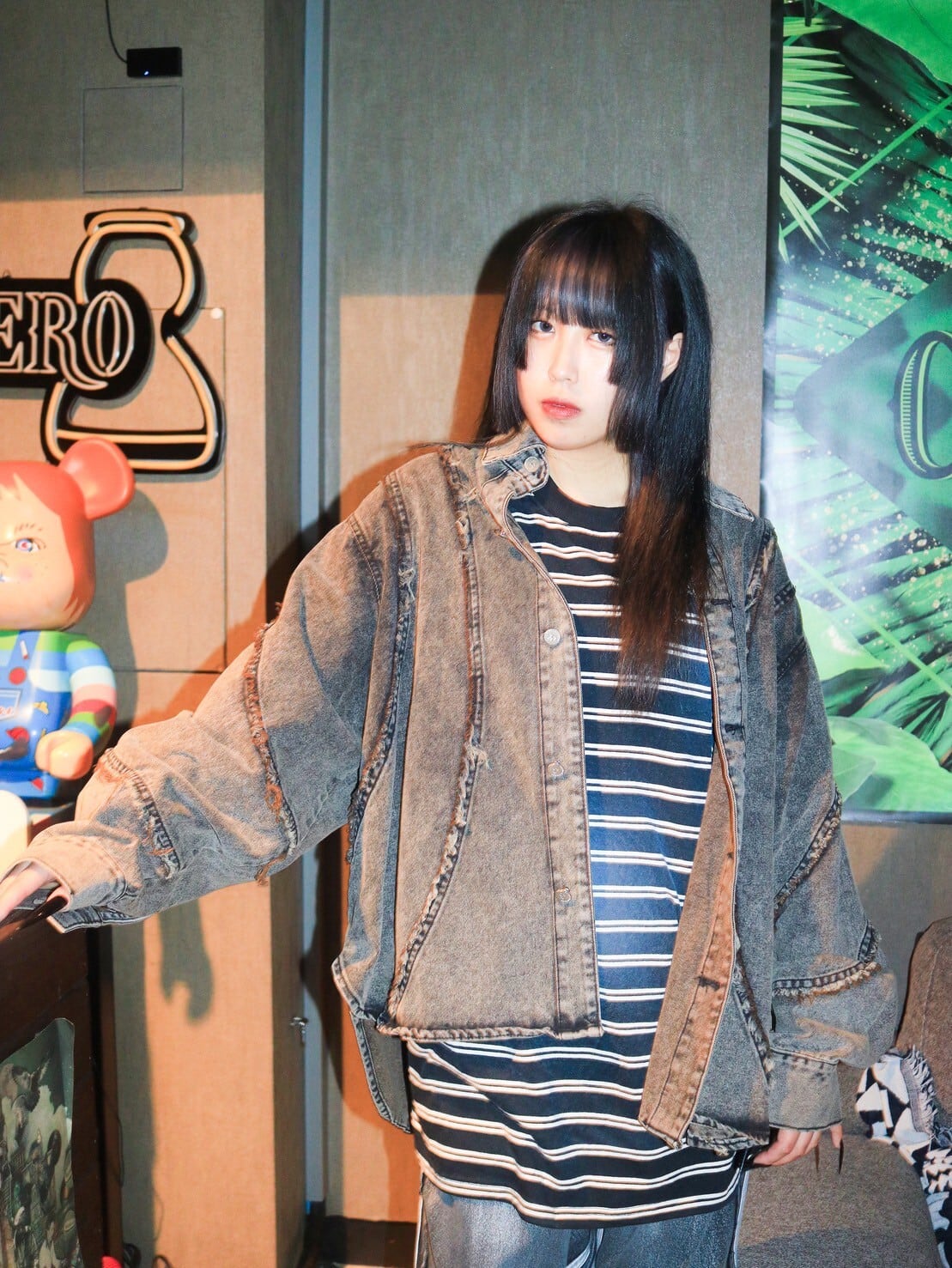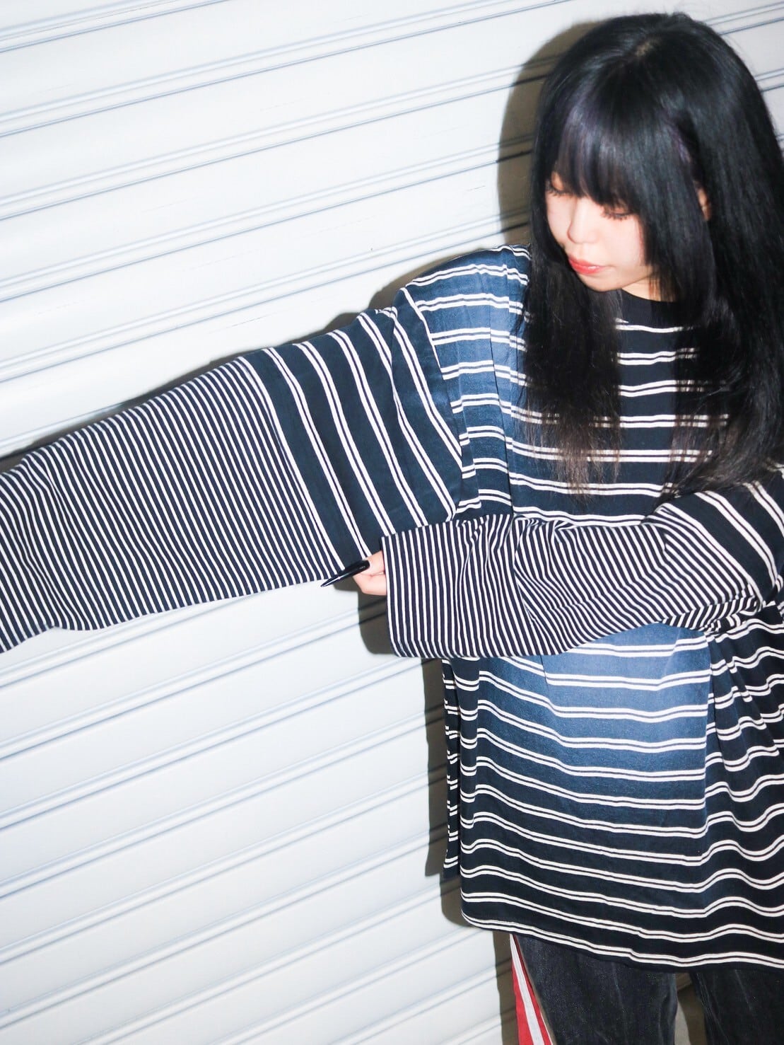 このオーバーサイズ長袖Tシャツは、ブラックとホワイトのストライプが特徴的なカジュアルデザインです。ゆったりとしたシルエットで、リラックスした着心地を提供。袖口には異なるストライプパターンがアクセントとなり、個性的なスタイルを演出します。コットン混紡素材を使用し、快適さと耐久性を兼ね備えた一枚で、日常使いやストリートファッションに最適です。